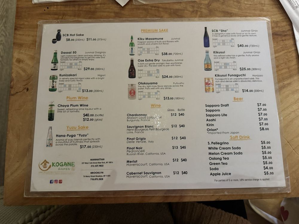 Kogane Ramen-Manhattan Menu (2025 Update)